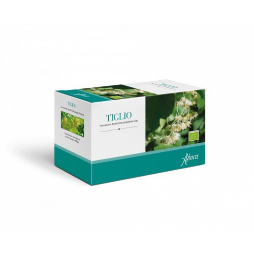 Tiglio Tisana Aboca, 20 bustine, favorisce il rilassamento e il sonno. Ottima per contrastare stress e agitazione, con proprietà antispasmodiche. Filtri salva-aroma.