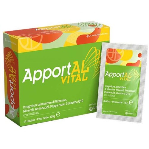 ApportAL Vital è un integratore alimentare completo, progettato per fornire un sostegno ottimale al tuo benessere generale. Questo prodotto, disponibile nella sezione Alimentazione e Integratori di ePharmacy, combina vitamine, minerali, aminoacidi, pappa reale e coenzima Q10 in una formulazione equilibrata e facile da assumere. Ogni bustina è studiata per offrirti un contributo significativo al mantenimento delle normali funzioni fisiologiche, supportando il sistema immunitario, la funzione cognitiva e il metabolismo energetico. Ideale per chi cerca un aiuto concreto per affrontare periodi di stanchezza, debolezza o convalescenza, ApportAL Vital si distingue per la sua composizione senza glutine e senza lattosio, rendendolo adatto anche a persone con particolari esigenze alimentari.