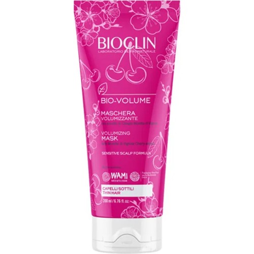 Bioclin Bio Volume Maschera, con ciliegia e olio di lino, idrata e ristruttura i capelli sottili e fragili, donando volume e lucentezza nel rispetto della cute sensibile.