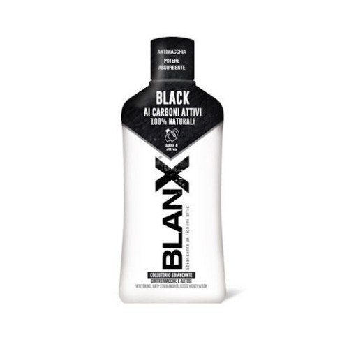 Blanx Collutorio Black 500ml è un collutorio sbiancante indicato per favorire la quotidiana igiene orale. Grazie alla presenza di Licheni Artici naturali e Zinco PCA, svolge un'azione antibatterica profonda, con effetto sbiancante e antimacchia dei Carboni Attivi naturali.Azione