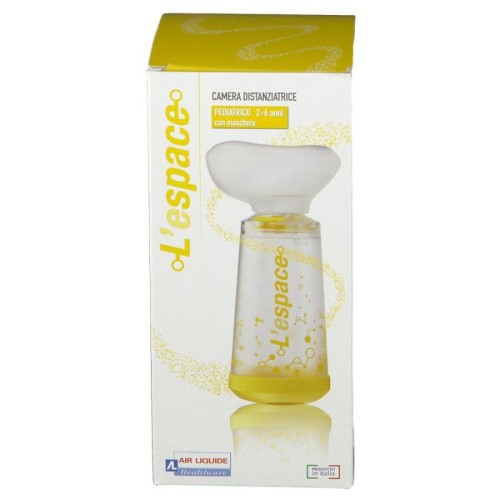 L'Espace Camera Distanziatrice con Maschera Pediatrica Gialla, prodotta da L'Espace, è un dispositivo medico progettato per ottimizzare la somministrazione di farmaci inalatori (MDI) nei bambini dai 2 ai 6 anni. Questa camera distanziatrice è particolarmente utile per i bambini che hanno difficoltà a coordinare l'inspirazione con l'erogazione dello spray, assicurando che una maggiore quantità di farmaco raggiunga le vie aeree inferiori. L'utilizzo di una camera distanziatrice come L'Espace può ridurre significativamente la deposizione del farmaco nella bocca e nella gola, minimizzando gli effetti collaterali e migliorando l'efficacia del trattamento. Questo dispositivo si colloca nella categoria Mamme e Bambini ed è uno strumento prezioso per la gestione dell'asma e di altre patologie respiratorie nei più piccoli. La maschera pediatrica, di colore giallo, è progettata per adattarsi confortevolmente al viso del bambino, garantendo una tenuta ottimale e riducendo le dispersioni del farmaco.