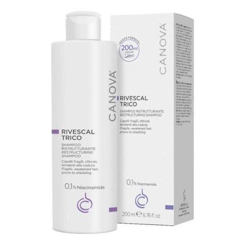 Il RIVESCAL TRICO SHAMPOO CANOVA è uno shampoo ristrutturante per capelli fragili, sfibrati e tendenti alla caduta. La sua formulazione contiene Niacinamide allo 0,1% in combinazione con Capixyl, a base di Trifoglio rosso, utili per il normale ciclo di crescita del capello. Contiene inoltre Pantenolo che favorisce un effetto protettivo e rinforzante per capelli morbidi, lucidi e maggiormente resistenti alle aggressioni ambientali; il Symcalmin in associazione ad emulsionanti delicati, favorisce un'azione lenitiva del cuoio capelluto.Modalità d'uso