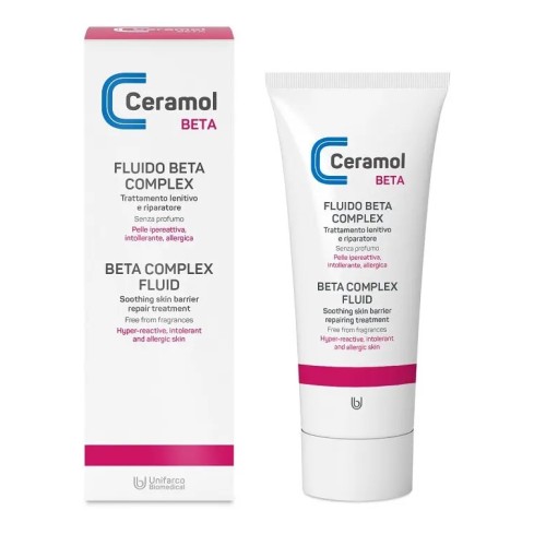 Ceramol Fluido Beta Complex è un trattamento dermo-cosmetico specificamente formulato per rispondere alle esigenze delle pelli più sensibili, iperattive, intolleranti e allergiche. Questo fluido leggero offre un sollievo immediato da arrossamenti, irritazioni e fastidi cutanei, contribuendo a ripristinare l'equilibrio della barriera cutanea. La sua formula delicata, priva di profumo, coloranti e conservanti a rischio di allergia, lo rende ideale per l'uso quotidiano su adulti, bambini e anziani. Unifarco Ceramol Fluido Beta Complex agisce in profondità per proteggere la pelle dagli agenti esterni e dai fattori irritanti, donando una sensazione di comfort e benessere duratura. Grazie alle sue proprietà lenitive e antiossidanti, questo trattamento è un valido alleato per contrastare gli squilibri della cute, come dermatite atopica, irritativa o allergica da contatto.