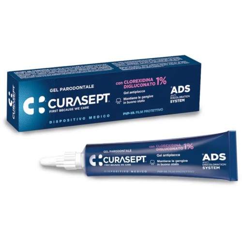 Il gel parodontale CURASEPT ADS Gel Parodontale 1% è caratterizzato dalla presenza di Clorexidina Digluconato 1% e dal sistema ADS (Anti Discoloration System). La sua texture è quella di un gel facile da applicare. Il prodotto è specificamente formulato per trattamenti topici gengivali antiplacca e antinfiammatori.Modalità d'uso