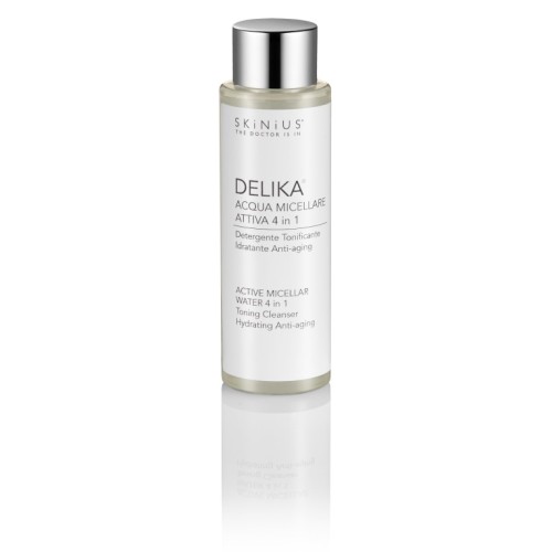 Deterge, tonifica, lenisce e svolge azione anti-aging lasciando l’epidermide idratata, tonica, elastica, compatta e luminosa. Rimuove il trucco e le impurità donando una piacevole sensazione di freschezza. Studiata per le pelli più delicate e sensibili, ideale anche in caso di pelle mista e pori dilatati. DELIKA contiene Fospidina, un complesso formato da fosfolipidi estratti dalla soia e glucosamina. La loro azione sinergica ha dimostrato un’importante azione rigenerante sui tessuti cutanei in quanto, l'attività della glucosamina, precursore dell’acido ialuronico, risulta efficace grazie alla veicolazione operata dai fosfolipidi che penetrano fino al derma.