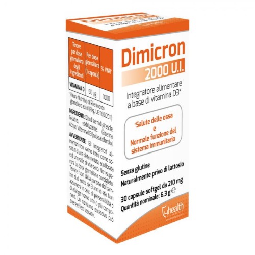 Dimicron 2000 U.I. è un integratore alimentare di vitamina D3, progettato per supportare il sistema immunitario e contribuire al mantenimento di ossa sane. Appartenente alla categoria Alimentazione e Integratori, questo prodotto è ideale per chi necessita di un apporto supplementare di vitamina D3, soprattutto in caso di ridotta esposizione solare o aumentato fabbisogno. La sua formulazione in capsule softgel facilita l'assorbimento del principio attivo, rendendolo un'opzione pratica ed efficace per integrare la dieta quotidiana. La vitamina D3 è essenziale per diverse funzioni biologiche, tra cui la regolazione del metabolismo del calcio e del fosforo, fondamentali per la salute delle ossa e dei denti.