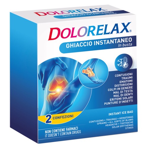 Dolorelax Ghiaccio Istantaneo è un dispositivo medico CE progettato per offrire un sollievo immediato in caso di traumi e lesioni. Questo prodotto è un valido alleato nella terapia termica di pronto soccorso, ideale per contusioni, distorsioni, ematomi e strappi muscolari. La sua efficacia si estende anche al trattamento di mal di testa, mal di denti, stati febbrili, e traumi di varia natura. Grazie alla sua rapidità d'azione, Dolorelax Ghiaccio Istantaneo rappresenta una soluzione pratica e indispensabile da tenere sempre a portata di mano, sia a casa che in viaggio.