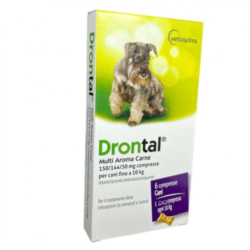 Drontal Multi Aroma Gusto Carne è un medicinale veterinario progettato per offrire una protezione completa contro i parassiti interni che possono compromettere la salute del tuo cane. Questo antielmintico è specificamente formulato per combattere efficacemente le infestazioni miste da nematodi e cestodi, assicurando che il tuo animale domestico rimanga sano e attivo. La sua formula unica, arricchita con un gradevole aroma di carne, rende la somministrazione facile e piacevole per il tuo cane, eliminando lo stress associato all'assunzione di farmaci. Grazie ai suoi principi attivi, Febantel, Pirantel e Praziquantel, Drontal Multi Aroma agisce rapidamente per eliminare i parassiti e prevenireFuture reinfestazioni. Questo prodotto è ideale per i proprietari di cani che cercano una soluzione efficace e sicura per proteggere i loro animali domestici dai vermi intestinali più comuni.