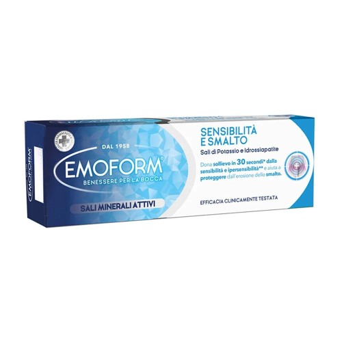 La formula di Emoform Sensibilità e Smalto è arricchita con ingredienti chiave che lavorano sinergicamente per garantire la massima efficacia. I sali di potassio presenti nella composizione aiutano a ridurre la sensibilità nervosa, mentre l'idrossiapatite contribuisce a remineralizzare lo smalto, riparando le microlesioni e rafforzando la superficie dentale. L'aggiunta di PVM/MA favorisce la formazione di una barriera protettiva che difende i denti dagli attacchi acidi. Questo dentifricio è inoltre privo di SLS e SLES, due agenti schiumogeni aggressivi che possono irritare le gengive e aumentare la sensibilità. La presenza di xilitolo, un dolcificante naturale, aiuta a prevenire la formazione della carie, mantenendo l'equilibrio del microbiota orale. Grazie a questa combinazione di ingredienti attentamente selezionati, Emoform offre una protezione completa e delicata per i denti sensibili.