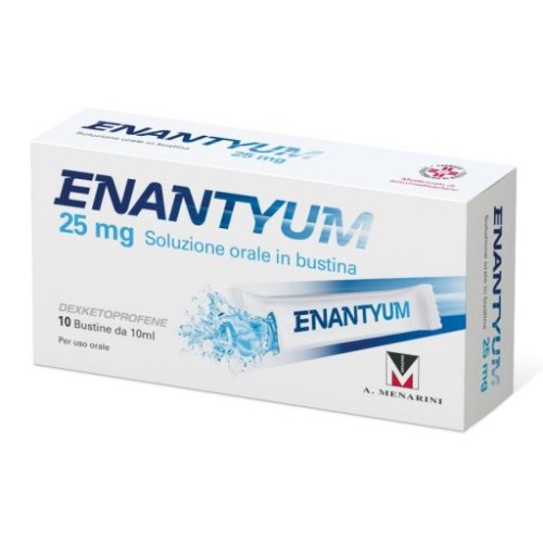 Avvertenze e precauzioni Si rivolga al suo medico o al farmacista prima di prendere Enantyum: • se soffre di allergia, o ha avuto problemi di allergie in passato; • se ha patologie renali, epatiche o cardiache (ipertensione e/o insufficienza cardiaca) e ritenzione di liquidi, o se ha sofferto in passato di uno di questi disturbi; • se è in terapia con diuretici o se è scarsamente idratato e se ha un volume di sangue ridotto a causa di un'eccessiva perdita di liquidi (ad esempio per minzione eccessiva, diarrea, vomito); • se è affetto da patologie cardiache, se ha avuto un ictus o se pensa di poter essere a rischio per queste condizioni (ad esempio se ha la pressione alta, il diabete o il colesterolo alto o se è fumatore), discuta la terapia con il medico o farmacista; i farmaci come Enantyum possono essere associati ad un lieve aumento del rischio di attacco cardiaco ("infarto del miocardio") o di accidente cerebrovascolare (ictus). Questi rischi sono più probabili con dosi alte del farmaco e con una terapia prolungata. Non eccedere la dose raccomandata o la durata del trattamento; • se è anziano, il rischio di effetti collaterali è più elevato (vedere punto 4); nell'eventualità che si presentino, consulti immediatamente il medico; • se è una donna con problemi di fertilità (questo medicinale può ridurre la fertilità femminile, non dovrà pertanto assumere il farmaco se sta pianificando una gravidanza o se si sta sottoponendo a delle indagini per la fertilità); • se soffre di un disturbo della formazione del sangue e delle cellule ematiche; • se soffre di lupus eritematoso sistemico o di connettivite mista (disturbi del sistema immunitario che interessano il tessuto connettivo); • se ha sofferto in passato di una malattia infiammatoria cronica dell'intestino (colite ulcerosa, morbo di Crohn); • se soffre o ha sofferto in passato di altri disturbi allo stomaco o all'intestino; • se ha un'infezione – vedere pragrafo “Infezioni” di seguito; • se sta assumendo altri farmaci che aumentano il rischio di ulcera peptica o di sanguinamento, ad esempio steroidi orali, alcuni antidepressivi (ad esempio gli SSRI, inibitori selettivi della ricaptazione della serotonina), antiaggreganti come l'aspirina o anticoagulanti come il warfarin. In questi casi consulti il medico prima di prendere questo medicinale: potrà prescriverle un farmaco aggiuntivo per proteggere lo stomaco (ad esempio misoprostolo o altri farmaci che riducono la produzione di acido gastrico); • se soffre di asma associata a rinite cronica, sinusite cronica e/o poliposi nasale, poiché lei presenta un maggiore rischio di allergia all'acido acetilsalicilico e/o ai FANS rispetto al resto della popolazione. La somministrazione di questo medicinale può causare attacchi di asma o broncospasmo specialmente in soggetti allergici all'acido acetilsalicilico o ai FANS. Infezioni Dexketoprofene può nascondere i sintomi di infezioni quali febbre e dolore. È pertanto possibile che questo medicinale possa ritardare un trattamento adeguato dell'infezione, cosa che potrebbe aumentare il rischio di complicanze. Ciò è stato osservato nella polmonite causata da batteri e nelle infezioni cutanee batteriche correlate alla varicella. Se prende questo medicinale mentre ha un'infezione e i sintomi dell'infezione persistono o peggiorano, si rivolga immediatamente al medico. Bambini e adolescenti L'utilizzo di dexketoprofene non è stato studiato nei bambini e negli adolescenti. Pertanto, la sicurezza e l'efficacia non sono state stabilite e il medicinale non deve essere usato nei bambini e negli adolescenti.