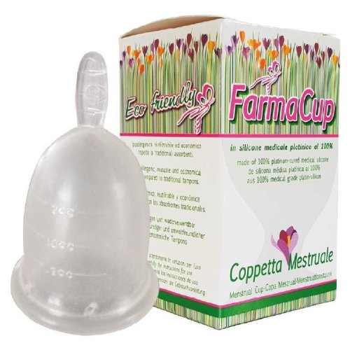 Ricordarsi di svuotare, risciacquare e reinserire la FarmaCup ogni 4/8 ore, secondo il flusso. Per pulire la coppetta, oltre a bollirla, è anche possibile immergerla in una soluzione al 5% di ipoclorito di sodio (seguendo le istruzioni fornite dal produttore di tale soluzione) e non superando il tempo di immersione che normalmente è di circa 10 minuti. Non utilizzare prodotti aggressivi che possono danneggiare la coppetta e provocare irritazioni, in particolare prodotti corrosivi, oli essenziali e saponi profumati. Non mettere la FarmaCup in lavastoviglie. Non è un metodo contraccettivo e che non protegge da malattie a trasmissione sessuale. Se si avverte bruciore o dolore durante la minzione estrarre subito la coppetta. In caso di problemi ginecologici consultare il medico prima di utilizzare FarmaCup. La coppetta va tolta prima di ogni rapporto sessuale ma non è necessario estrarla per la minzione o la defecazione. Non prestare né scambiare la propria FarmaCup con nessuno. Tenere la coppetta FarmaCup lontana dagli animali domestici. La Sindrome da Shock Tossico (TSS) è una patologia estremamente grave causata da una tossina di origine batterica legata allo Stafilococco Aureus. La TSS è spesso associata all’utilizzo di assorbenti tradizionali. I suoi sintomi sono affini a quelli dell’influenza ed includono: febbre alta ed improvvisa (> di 39°C), dolori muscolari, vomito, mal di testa, diarrea, vertigini, svenimenti, eruzioni cutanee simili ad un eritema o a un’insolazione. Se doveste riscontrare uno di questi sintomi, togliete FarmaCup e consultate immediatamente un Medico. Qualora abbiate già sofferto in precedenza di TSS, consultate preventivamente il vostro Medico prima di utilizzare la coppetta FarmaCup. Il Gambo non deve dare alcun senso di disagio ed è importante che non sporga dalla vagina. Se dovesse risultare troppo lungo per il tuo corpo è possibile accorciarlo in modo che arrivi solo fino al bordo, avendo l'accortezza di arrotondare gli eventuali spigoli che si potrebbero creare in conseguenza del taglio. Il gambo andrà accorciato solo dopo aver determinato con certezza che è troppo lungo, quindi dopo aver utilizzato la coppetta più volte. Nell'ipotesi che il gambo sia completamente da tagliare è possibile farlo ma solamente se si è sicuri di riuscire ad estrarlo anche senza il suo aiuto. Il primo indizio che aiuta ad accorgersi che il gambo è da tagliare è dato dal fastidio che si potrebbe avere nel sedersi o nel camminare. Tagliare un pezzettino alla volta e provare la lunghezza per evitare di tagliare il gambo troppo corto. Se la Tua FarmaCup è posizionata correttamente non si avranno perdite. Nel caso in cui succeda, questo può essere dovuto alla sua posizione, al gambo, all'aderenza, alla misura.### Formato La confezione contiene: 1 FarmaCup in puro silicone, 1 sacchetto di cotone per riporla e le istruzioni d’uso.