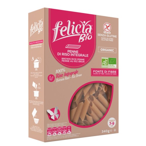 La certificazione biologica delle Felicia Bio Penne assicura che il riso integrale utilizzato provenga da agricoltura biologica, senza l'impiego di pesticidi, erbicidi o fertilizzanti chimici. Questo garantisce un prodotto più sano e rispettoso dell'ambiente. L'assenza di glutine rende queste penne adatte a persone con celiachia o sensibilità al glutine, offrendo loro la possibilità di gustare un piatto di pasta in tutta sicurezza. La combinazione di ingredienti biologici e l'assenza di glutine fanno di queste penne un'opzione ideale per chi cerca un prodotto di alta qualità, sicuro e adatto a diverse esigenze alimentari. Con le Felicia Bio Penne di Riso Integrale Senza Glutine, puoi portare in tavola un alimento sano, gustoso e rispettoso del tuo benessere.