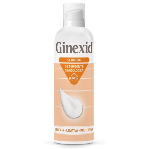Ginexid Schiuma Detergente Ginecologica è indicato per l'igiene intima quotidiana anche in presenza di patologie come vulviti batteriche e micotiche. È utile in situazioni fisiologiche particolari come gravidanza, post-parto, periodo pre-mestruale e post-menopausa.Azione