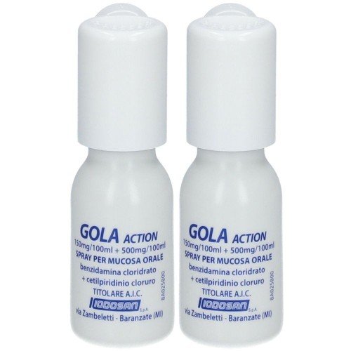 Avvertenze e precauzioni Si rivolga al medico o al farmacista prima di usare GOLA ACTION. • Non usi questo medicinale per più di 10 giorni. Se non nota risultati apprezzabili, consulti il medico. • L'uso, specie se prolungato, dei medicinali per uso locale, come GOLA ACTION, può causare fenomeni di sensibilizzazione (reazioni allergiche). In questo caso interrompa il trattamento e si rivolga al medico. • Eviti il contatto con gli occhi. • GOLA ACTION non deve essere usato insieme a sostanze detergenti (composti anionici) che possono essere presenti per esempio nei dentifrici, pertanto non usi il prodotto immediatamente prima o dopo aver lavato i denti.