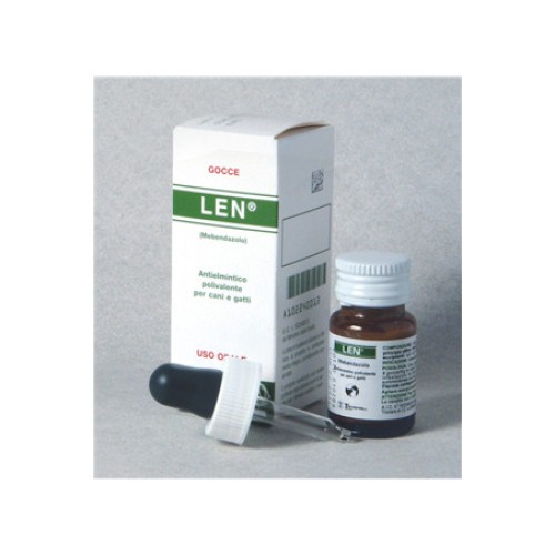 Len Gocce è un farmaco veterinario antielmintico in sospensione orale per gatti, cani di piccola taglia e cuccioli. Contiene mebendazolo come principio attivo, noto per la sua efficacia contro diverse specie di parassiti gastrointestinali. Il mebendazolo agisce interferendo con il metabolismo dei parassiti, portando alla loro eliminazione.Modalità d'uso e Posologia