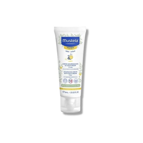 La formula di Mustela Crema Nutritiva al Cold Cream è arricchita con ingredienti preziosi come la cera d’api bio, il burro di karitè e gli oli vegetali, noti per le loro proprietà nutrienti e protettive. Il cold cream naturale, ingrediente chiave di questa crema, crea una barriera protettiva sulla pelle, aiutando a prevenire la perdita di idratazione e a proteggerla dalle aggressioni esterne come il freddo e il vento. Il burro di karitè, ricco di vitamine e acidi grassi essenziali, nutre in profondità la pelle, mentre gli oli vegetali contribuiscono a mantenerla morbida ed elastica. Grazie a questa combinazione di ingredienti naturali, la crema offre un'azione nutriente completa e delicata, ideale per la pelle sensibile dei neonati e dei bambini.