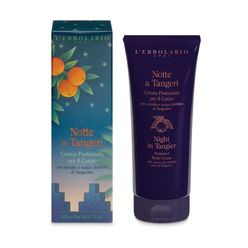 La Crema Corpo Notte a Tangeri di L'Erbolario è una crema vellutata, nutriente e ricca, con una fragranza misteriosa, sensuale ed esotica. Contiene il 97% di ingredienti naturali e sostanze funzionali come estratto e acqua distillata di Tangerino, estratti di Dattero e Cardamomo, oli di Argan, Cartamo e Girasole, frazione insaponificabile dell'olio di Oliva, burri di Cocco, Cacao e Sal, e Vitamina E dai semi di Soia. È priva di siliconi, parabeni e petrolati.