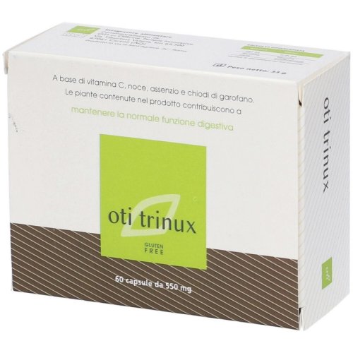 Oti Trinux 60 Capsule è un integratore alimentare progettato per supportare la normale funzione digestiva e contribuire al benessere generale dell'organismo. Questo prodotto, appartenente alla categoria Alimentazione e Integratori, è formulato con una combinazione di ingredienti naturali attentamente selezionati per le loro proprietà benefiche. La sua composizione include vitamina C, nota per il suo ruolo nel sistema immunitario, e una miscela di estratti vegetali come noce, assenzio e chiodi di garofano, tradizionalmente utilizzati per favorire la digestione e il comfort gastrointestinale. L'integratore è ideale per chi cerca un supporto naturale per mantenere l'equilibrio del proprio sistema digestivo e promuovere una sensazione di benessere quotidiano.