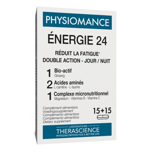 Ingredienti compressa giorno: L-carnitina tartrato; agenti di carica: fosfato dicalcico; cellulosa microcristallina e carbonato di magnesio; L-taurina, vitamina C (acido L-ascorbico); antiagglomerante: acidi grassi; estratto di ginseng (radice di Panax Ginseng C.A. Meyer) titolato in ginsenosidi; agenti di rivestimento: idrossipropilmetilcellulosa; acido stearico e cellulosa microcristallina.