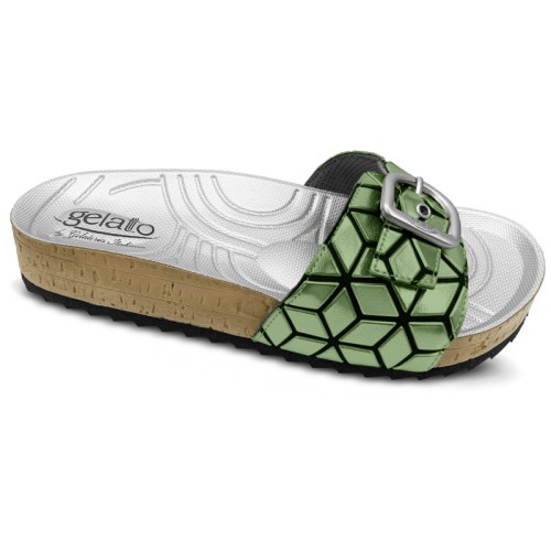 Le scarpe Woodstock Pixel Green di Gelateria International sono indicate per fornire comfort e supporto durante la camminata. Sono un dispositivo medico di Classe I, adatto per l'uso quotidiano.Azione