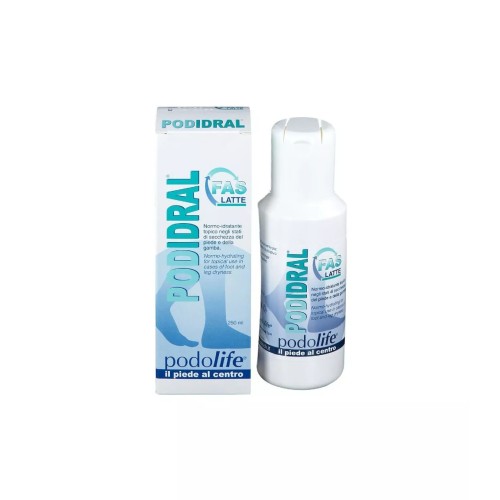 La crema Podidral Fas Latte ha un'azione normo-idratante e riepitelizzante. Garantisce un'intensa azione emolliente ed idratante. La sua formulazione comprende ingredienti come urea, glicerina e acido ialuronico, noti per le loro proprietà idratanti.Modalità d'uso