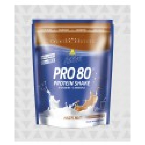 Concentrato per la preparazione di uno shake proteico (80%), con vitamine e minerali. Con edulcoranti.