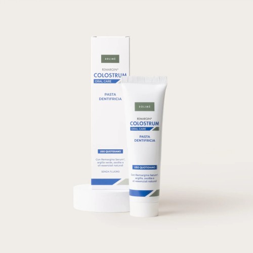 La pasta dentifricia SOLIME' Remargin Colostrum rappresenta una soluzione innovativa per chi cerca un'igiene orale efficace e delicata. Formulata specificamente per le gengive sensibili, questa pasta dentifricia combina ingredienti naturali di alta qualità con la potenza rigenerante del colostro. La sua azione delicata ma profonda garantisce una pulizia completa del cavo orale, contrastando efficacemente la formazione di placca e tartaro senza aggredire i tessuti più delicati.