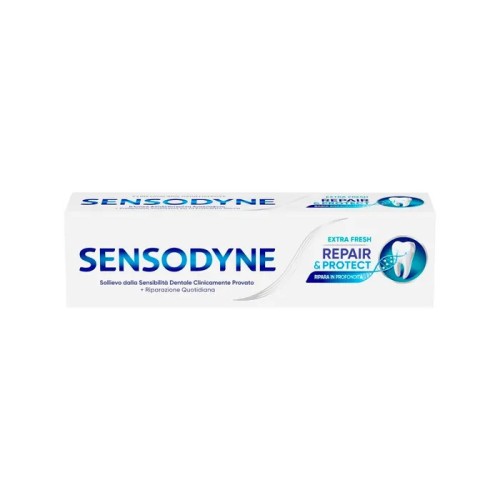 Sensodyne Repair & Protect Extra Fresh è indicato per i denti sensibili. Aiuta a riparare le aree vulnerabili dei denti e a prevenire la sensibilità dentale.Azione
