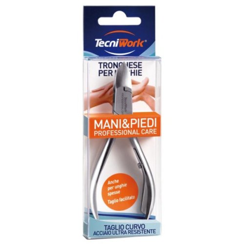 Tronchese Unghie Tecniwork in acciaio satinato con taglio curvo, ideale per unghie di mani e piedi. Ergonomica e resistente, per un taglio preciso. Non sterilizzabile.