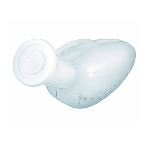 Urinale bianco con tappo per umoro, per la raccolta dell'urina di pazienti allettati.Modalità d'uso