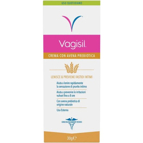 Vagisil Crema Avena Prebiotica è un prodotto della linea Igiene e Benessere, specificamente formulato per offrire un sollievo delicato e naturale in caso di irritazioni intime. Questa crema, arricchita con avena prebiotica, è ideale per lenire la sensazione di prurito e proteggere la zona vulvare, creando una barriera protettiva che dura fino a 8 ore. La sua formula ipoallergenica e non steroidea la rende adatta anche alle pelli più sensibili, garantendo un'azione efficace e rispettosa dell'equilibrio naturale della zona intima. Grazie alla sua composizione, contribuisce a mantenere l'idratazione e a prevenire le irritazioni, offrendo una sensazione di comfort e benessere quotidiano. Questo prodotto è la scelta ideale per chi cerca un trattamento delicato e naturale per l'igiene intima.