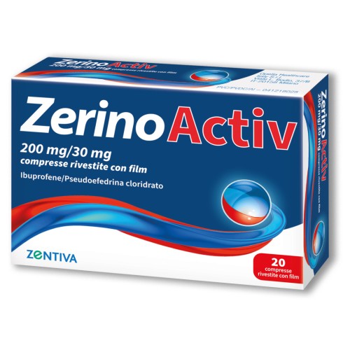Avvertenze e precauzioni Deve discutere la terapia con il medico o il farmacista prima di prendere ZERINOACTIV: • se soffre di asma; l'uso di questo farmaco può provocare un attacco d'asma; • se ha una storia di patologie gastrointestinali (come per esempio ernia iatale, sanguinamento gastrointestinale, ulcera peptica o duodenale) e malattie infiammatorie croniche intestinali (colite ulcerosa, morbo di Crohn); • se ha problemi cardiaci inclusi attacco cardiaco, angina (dolore al petto) o se ha precedenti di attacco cardiaco, intervento di bypass coronarico, malattia arteriosa periferica (scarsa circolazione alle gambe o ai piedi dovuta a restringimento oppure ostruzione delle arterie) oppure qualunque tipo di ictus (incluso "mini ictus" o "TIA", attacco ischemico transitorio); • se ha pressione alta, diabete, colesterolo alto, storia familiare di malattia cardiaca o ictus, oppure se è un fumatore; • se soffre di ipertiroidismo (iperattività della tiroide); • se ha il lupus eritematoso sistemico (malattia del tessuto connettivo), e la malattia mista del tessuto connettivo, o disordine congenito del metabolismo della porfirina; • se assume farmaci che interagiscono con ZERINOACTIV, vedere l'elenco riportato qui di seguito; • se ha un'infezione - vedere paragrafo "Infezioni" di seguito; • se sviluppa un'eruzione cutanea o sintomi cutanei, deve interrompere immediatamente l'assunzione di ibuprofene, consultare immediatamente un medico e informare il medico che sta assumendo questo medicinale. I farmaci antinfiammatori/antidolorifici come l'ibuprofene possono essere associati a un modesto aumento del rischio di attacco cardiaco o ictus, specialmente se somministrati in dosi elevate. Non superare la dose raccomandata o la durata del trattamento. Con l'ibuprofene sono stati segnalati segni di una reazione allergica a questo medicinale, inclusi problemi respiratori, gonfiore della regione del viso e del collo (angioedema) e dolore al petto. Interrompa immediatamente ZERINOACTIV e contatti immediatamente il medico o il servizio di emergenza sanitaria se nota uno di questi segni. Reazioni della pelle In associazione al trattamento con ibuprofene sono state segnalate reazioni cutanee gravi tra cui dermatite esfoliativa, eritema multiforme, sindrome di Stevens-Johnson, necrolisi epidermica tossica, reazione da farmaco con eosinofilia e sintomi sistemici (DRESS), pustolosi esantematica acuta generalizzata (AGEP). Smetta di usare ZERINOACTIV e contatti immediatamente il medico se nota uno qualsiasi dei sintomi correlati a queste reazioni cutanee gravi descritte nel paragrafo 4. Dolore addominale improvviso o sanguinamento rettale possono verificarsi con ZERINOACTIV, a causa di infiammazione del colon (colite ischemica). Se lei sviluppa questi sintomi gastro-intestinali, interrompa l'assunzione di ZERINOACTIV e contatti il medico o chieda immediatamente assistenza medica. Vedere il paragrafo 4. In casi molto rari sono state segnalate reazioni cutanee gravi quando si utilizza un FANS. I pazienti sembrano essere maggiormente a rischio all'inizio della terapia; l'insorgenza della reazione si verifica nella maggior parte dei casi nel primo mese di trattamento. Interrompa l'assunzione di ZERINOACTIV e contatti il suo medico o si rivolga immediatamente a una struttura di assistenza medica se sviluppa una eruzione cutanea o lesioni delle mucose. Infezioni ZERINOACTIV può nascondere i sintomi di infezioni quali febbre e dolore. È pertanto possibile che ZERINOACTIV possa ritardare un trattamento adeguato dell'infezione, cosa che potrebbe aumentare il rischio di complicanze. Ciò è stato osservato nella polmonite causata da batteri e nelle infezioni cutanee batteriche correlate alla varicella. Se prende questo medicinale mentre ha un'infezione e i sintomi dell'infezione persistono o peggiorano, si rivolga immediatamente al medico. Durante un'infezione da varicella è consigliabile evitare l'uso di questo medicinale. Nei pazienti con lupus eritematoso sistemico e malattie miste del tessuto connettivo può esserci un aumento del rischio di meningite asettica o epatite. L'uso prolungato di qualsiasi tipo di antidolorifico per il mal di testa può peggiorare tale condizione. Se manifesta mal di testa frequenti o giornalieri nonostante (o a causa di) l'uso regolare di farmaci per il mal di testa, consulti il medico prima di prendere un altro antidolorifico. Il trattamento deve essere interrotto se viene diagnosticato il mal di testa da abuso di farmaci. Contatti il medico in caso di trattamento prolungato con ibuprofene, in quanto la funzione del fegato e dei reni, così come il quadro ematico, devono essere controllati regolarmente. L'assunzione abituale di antidolorifici, in particolare la combinazione di diversi medicinali antidolorifici, può portare a danno renale permanente con il rischio di insufficienza renale (nefropatia analgesica). Questo rischio può essere aumentato sotto sforzo fisico associato a perdita di sale e disidratazione. Pertanto, deve essere evitato. Sono stati segnalati casi di sindrome da encefalopatia posteriore reversibile (PRES) e sindrome da vasocostrizione cerebrale reversibile (RCVS) in seguito all'uso di medicinali contenenti pseudoefedrina. PRES e RCVS sono condizioni rare che possono comportare un ridotto apporto di sangue al cervello. Smetta immediatamente di usare ZERINOACTIV e chieda assistenza medica immediata se sviluppa sintomi che potrebbero essere segni di PRES o RCVS (vedere paragrafo 4 "Possibili effetti indesiderati" per i sintomi). Con ZERINOACTIV potrebbe verificarsi una riduzione del flusso sanguigno al nervo ottico. Se si verifica un'improvvisa perdita della vista, interrompa l'assunzione di ZERINOACTIV e si rivolga immediatamente al suo medico o a una struttura di assistenza sanitaria. Vedere paragrafo 4. Interferenza con gli esami del sangue La pseudoefedrina può potenzialmente interferire con alcuni test diagnostici del sangue. Deve comunic